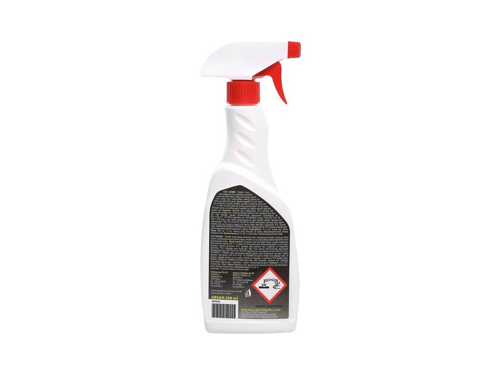 - Aplikace: Nádobku protřepejte a přípravek rovnoměrně nastříkejte na znečištěné plochy.