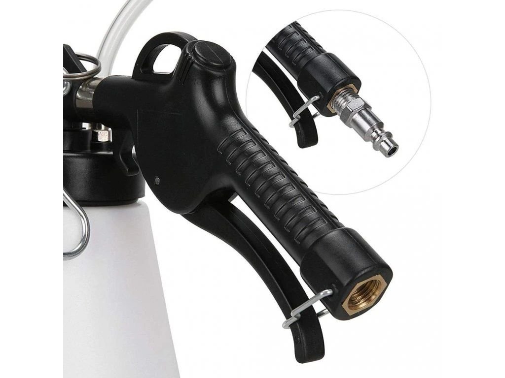 Udělejte z odvzdušňování brzd rychlou a čistou práci pro jednoho člověka! Tento přípravek funguje na principu podtlaku (Venturiho efekt), který vytváříte pomocí dílenského kompresoru. Nejenže s ním snadno odsajete starou brzdovou kapalinu a vzduchové bubliny, ale jeho univerzálnost oceníte i při mnoha dalších servisních úkonech.