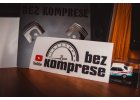 Plastová podložka RZ na motocykl s nápisem Bez Komprese Jednoduchá instalace během pár minut Univerzální uchycení Logo Bez Komprese