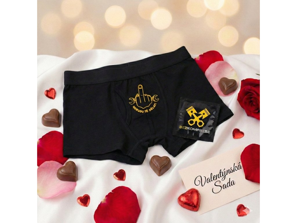 Vybav ho na Valentýna vtipně! 💘 Set obsahuje originální trenýrky „Nebudu tě dělat“ a kondom Bez Komprese. Maximální pohodlí a styl pro váš společný večer. 🎁