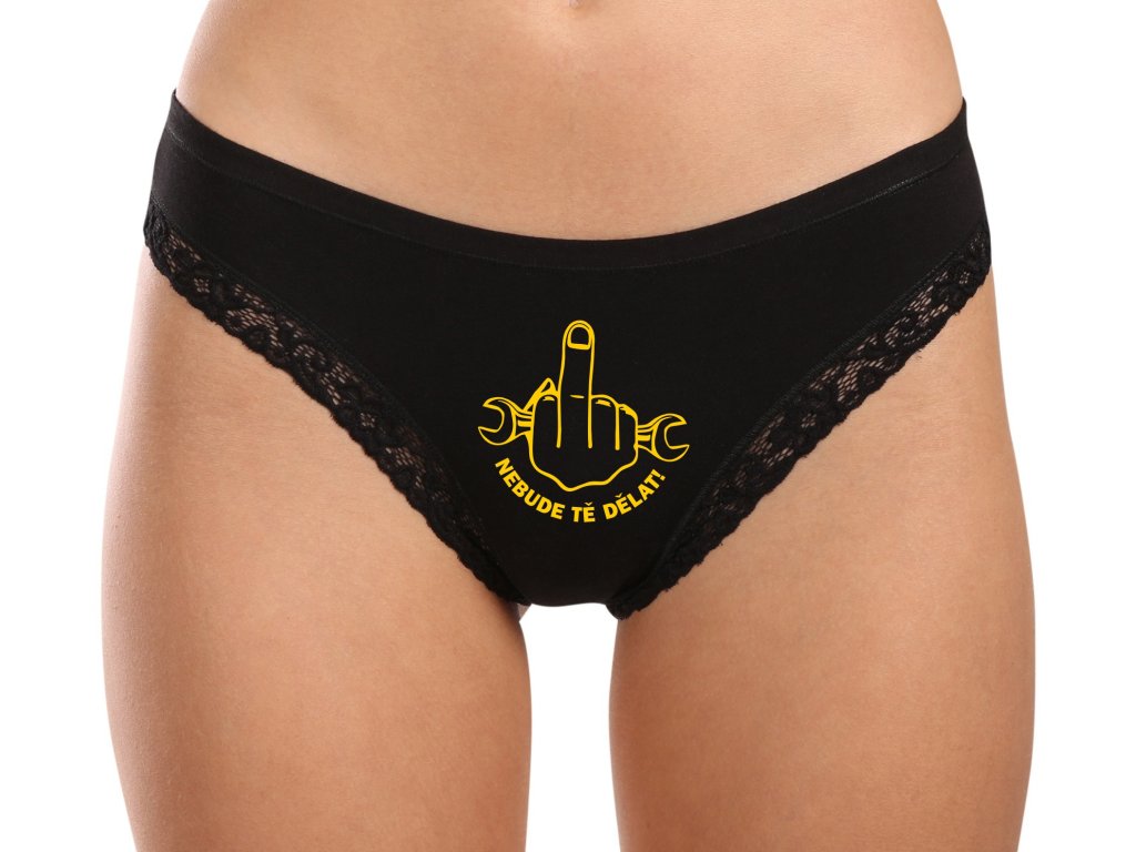 • Kalhotky „Nebude tě dělat“: Spodní prádlo s jasným vzkazem, který pobaví. Jsou vyrobeny z příjemné kombinace 95 % bavlny a 5 % elastanu, takže nikde netlačí a sedí jako ulité. Ideální pro celodenní nošení i večerní překvapení. 🍑